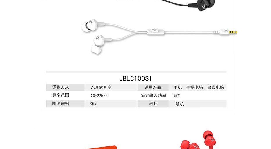 JBL 有线耳机 C100SI野行动苹果安卓通用四指金属穿越火线外挂 骨灰级升级款【两个装】不挡屏幕 快速射击
